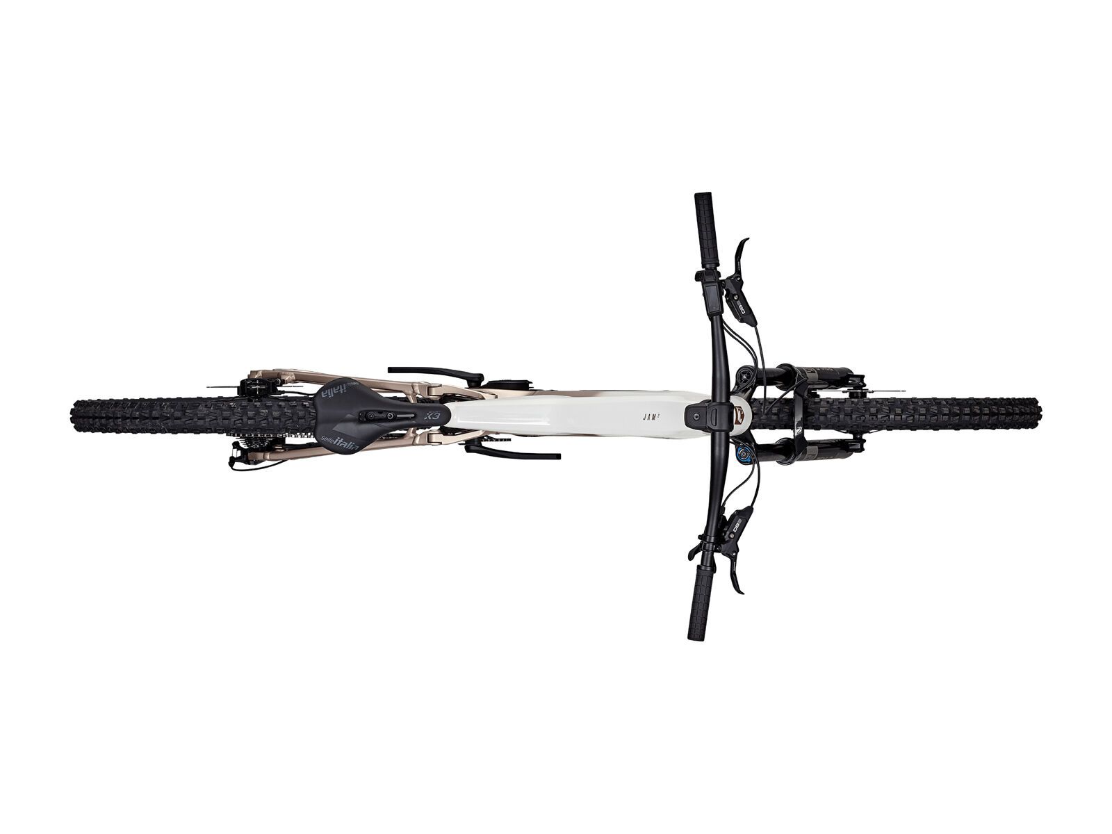 Das elegante Farbdesign in White / Adamant Silver unterstreicht den sportlichen Charakter des Bikes und macht es zu einem echten Blickfang auf jedem Trail.